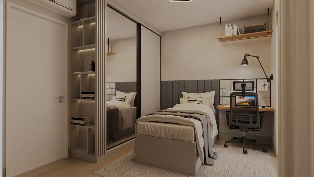 Persianas motorizadas nos dormitórios;