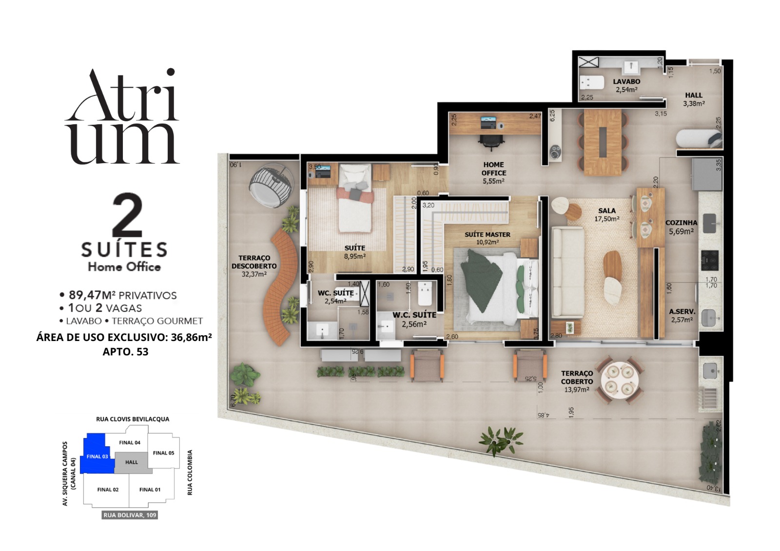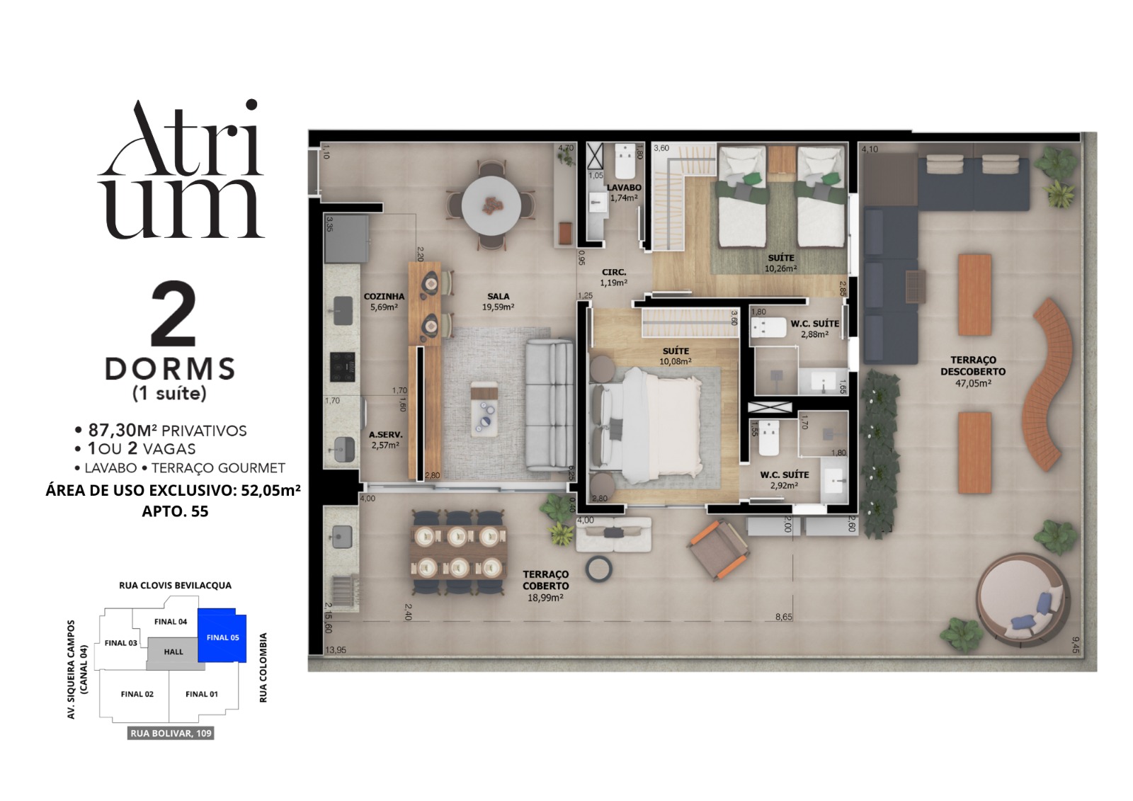O Atrium está no coração do Boqueirão, um dos bairros mais desejados de Santos. Uma região que combina a praticidade da vida urbana — com comércios, serviços e conveniência por perto — com a leveza do litoral, a poucos passos da praia.